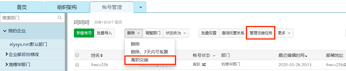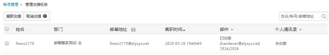• 支持分别对“离职”员工的邮件、通讯录进行交接;